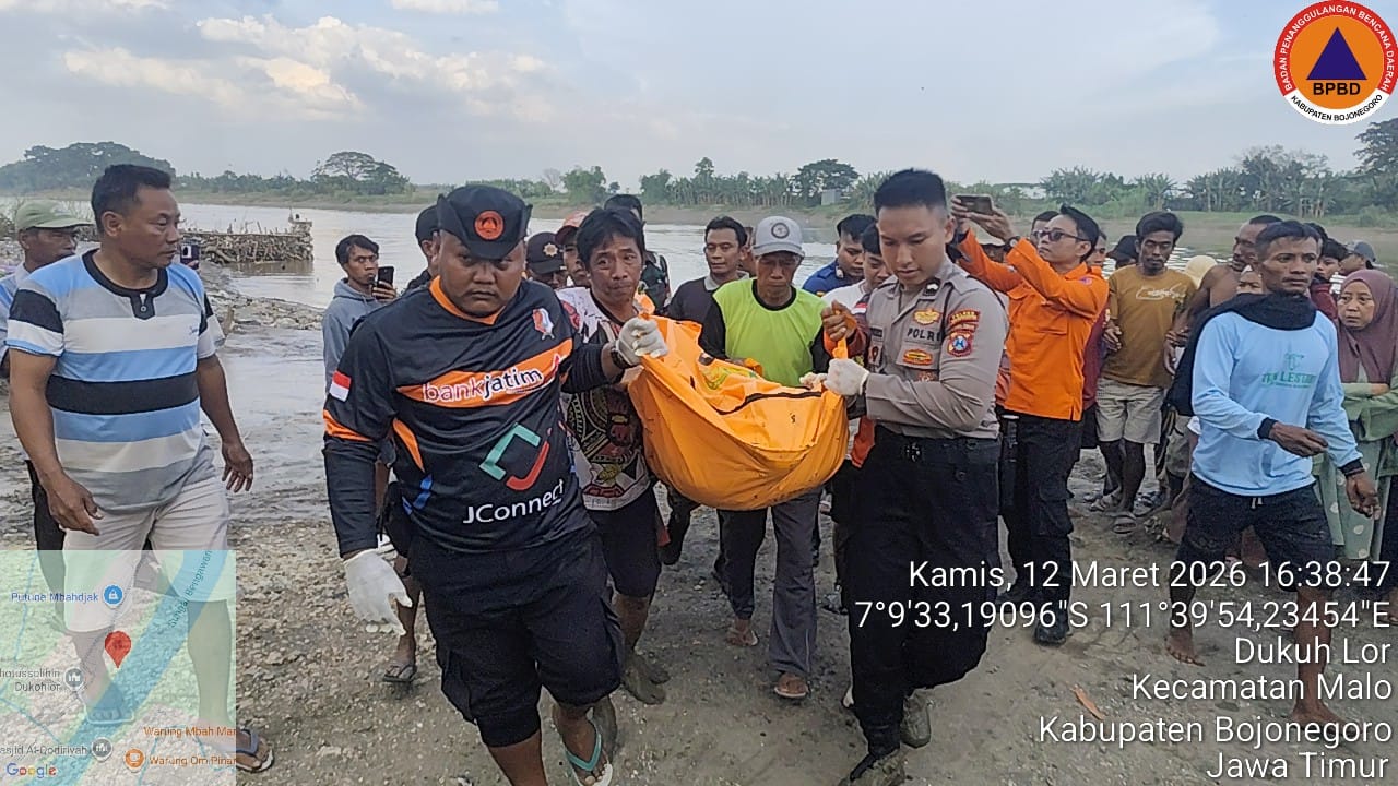 BPBD Bojonegoro, Kejadian warga hilang saat melakukan mencari ikan di Bantaran Sungai Bengawan Solo pada hari Rabu Tanggal 11 Maret 2026, akhirnya berhasil diketemukan pada...